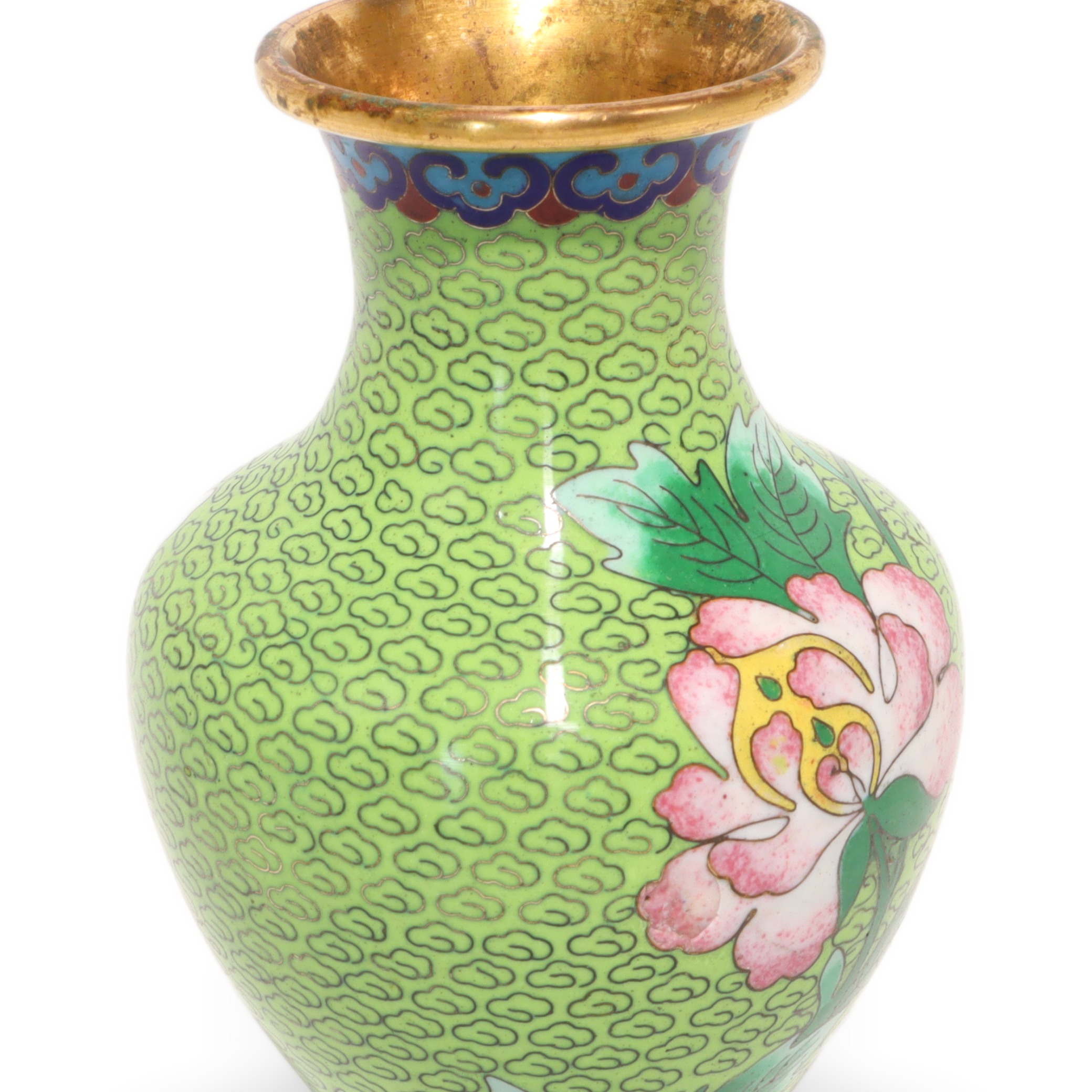 Hier hast du ein echtes Schmuckstück aus der Welt der ostasiatischen Kunst – eine Chinesische Cloisonné Vase mit einem floralen Dekor, Jahrgang 1960.…