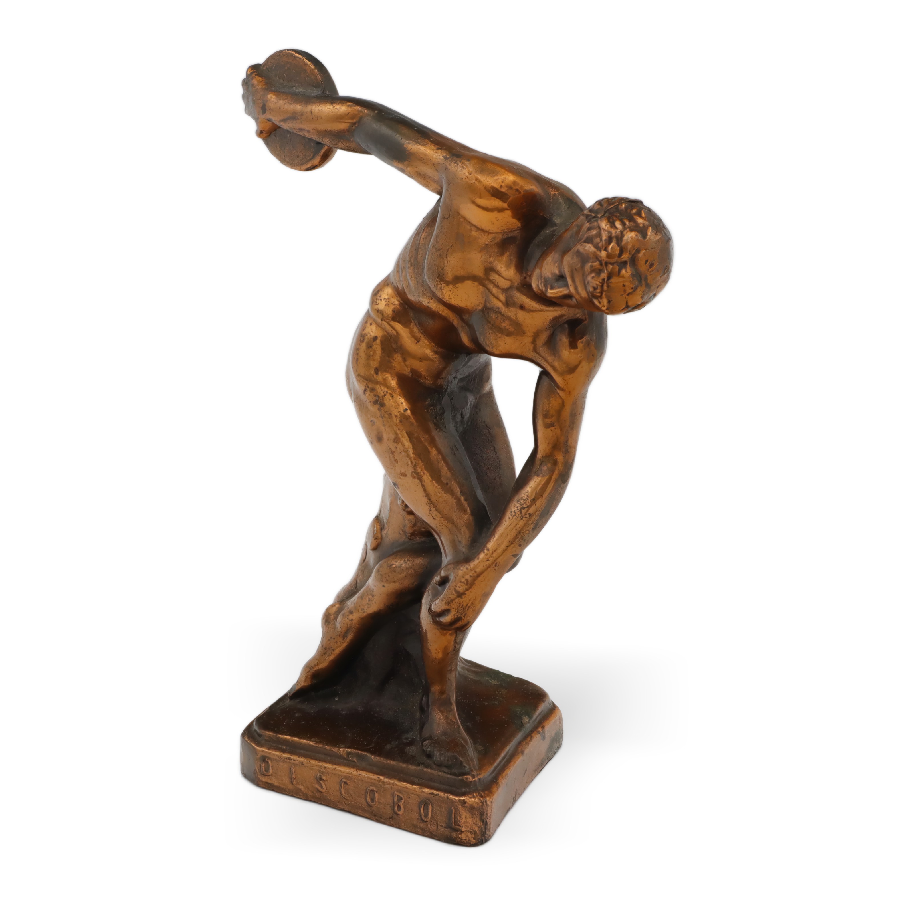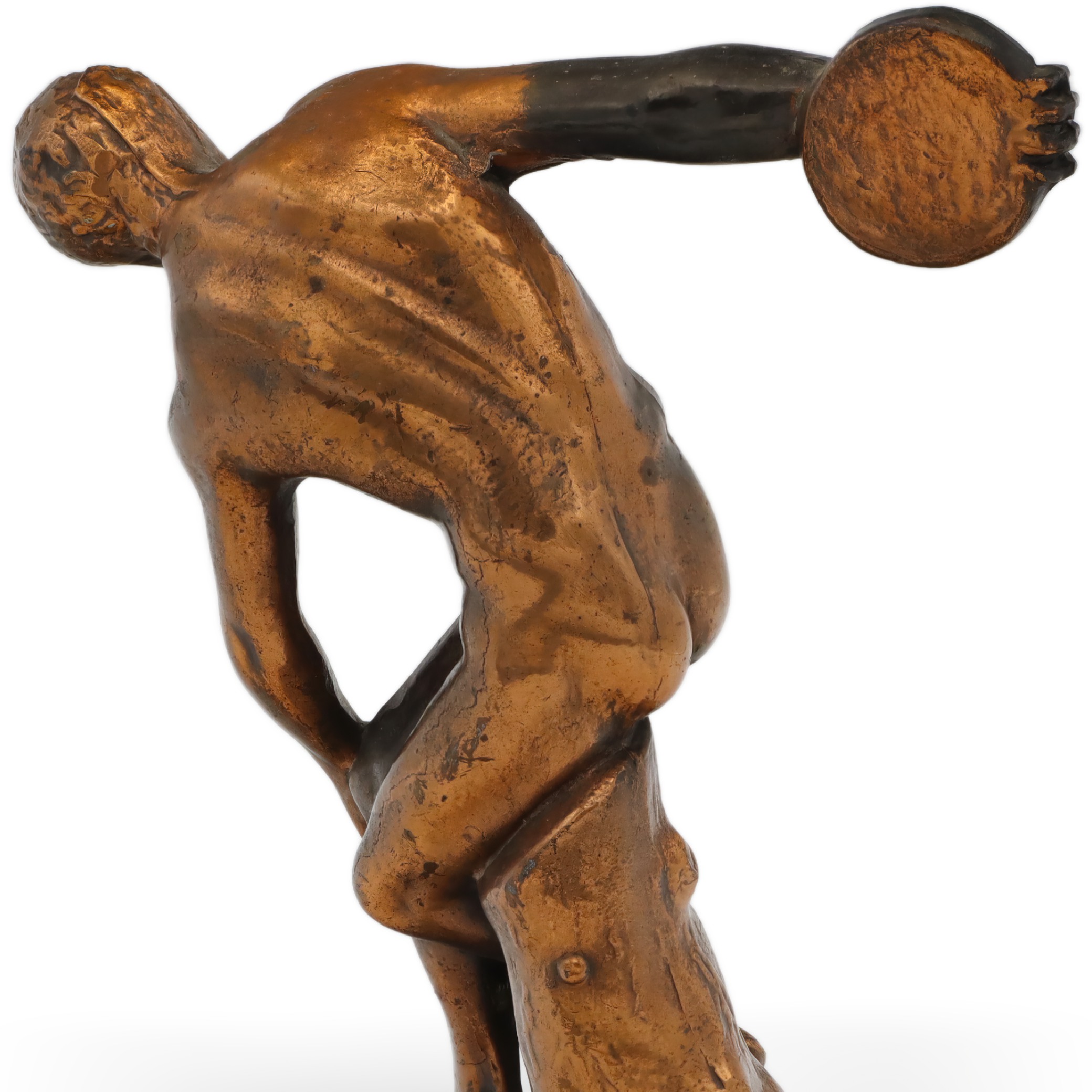 Die Popularität von Repliken antiker Skulpturen wuchs im Laufe des 20. Jahrhunderts stetig, insbesondere in den späten Siebziger- und frühen Achtzigerjahren. Die Nachfrage nach dekorativen Kunstobjekten für ein gebildetes, kunstinteressiertes Publikum stieg rasant – nicht zuletzt auch durch das wachsende öffentliche Interesse an den Olympischen Spielen und dem Geist der klassischen Antike. Diese Diskobolos-Replik wurde 1980 in limitierter Auflage produziert und ist heute nur noch selten in dieser herausragenden Qualität auffindbar.
