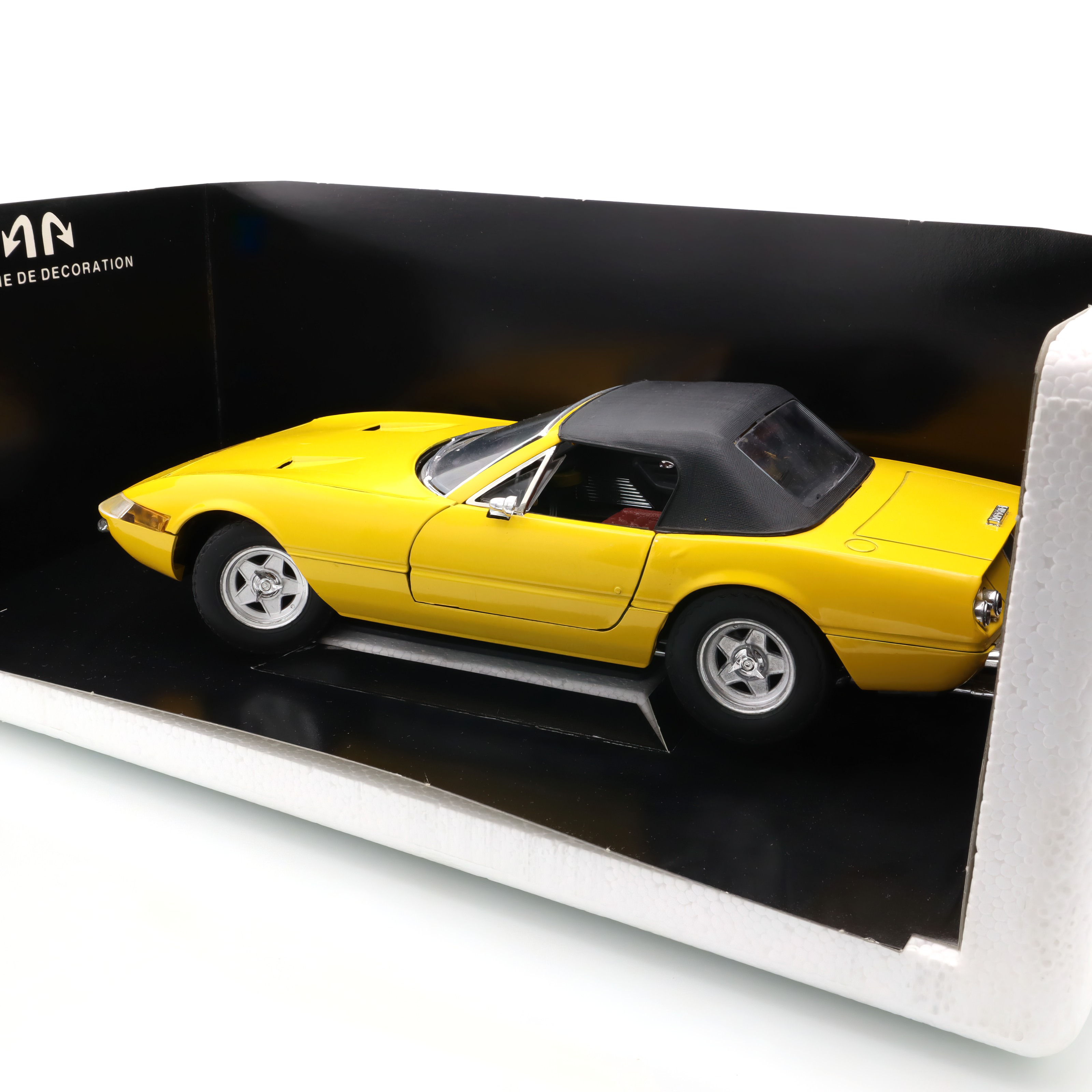 Das hier angebotene Sammlerobjekt ist ein Ferrari 365 GTS Prestige Modellauto im Maßstab 1:18, hergestellt vom renommierten Hersteller Solido im Jahr 1995. Das Modellauto ist ein echtes Schmuckstück für jede Sammlung und verkörpert klassische italienische Sportwagen-Eleganz in Perfektion. Die detailgetreue Nachbildung besticht durch seine auffällige gelbe Lackierung, die den legendären Charakter dieses Ferrari sofort ins Auge springen lässt. Das Solido-Modell ist aus hochwertigem Druckguss gefertigt und vermittelt bereits beim Anblick eine authentische Wertigkeit.