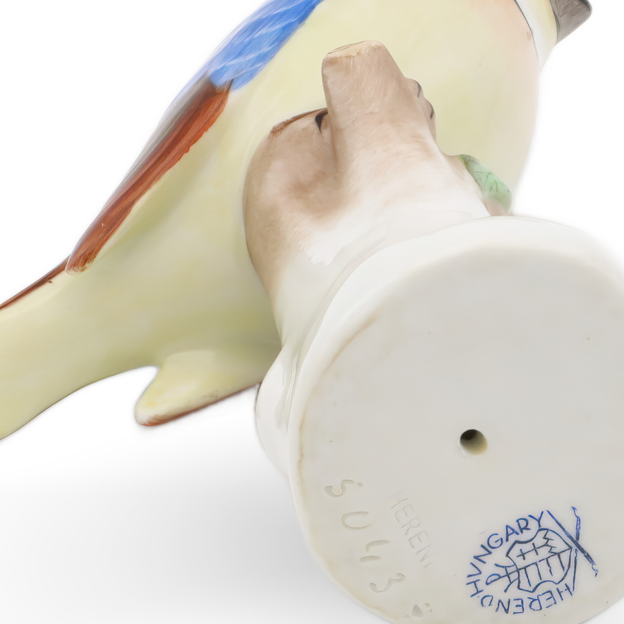 Was die Seltenheit betrifft: Figuren wie diese werden heute kaum noch in solch traditioneller Methode gefertigt. Jeder Pinselstrich stammt von einer erfahrenen Herend-Malerin oder einem Maler, die nach wie vor Techniken anwenden, wie sie schon im 19. Jahrhundert üblich waren. In Kombination mit dem ausgezeichneten Zustand und der charmanten Motivwahl – dem für Europa typischen Blaumeise – ist dieses Exemplar ein wahres Sammlerstück.