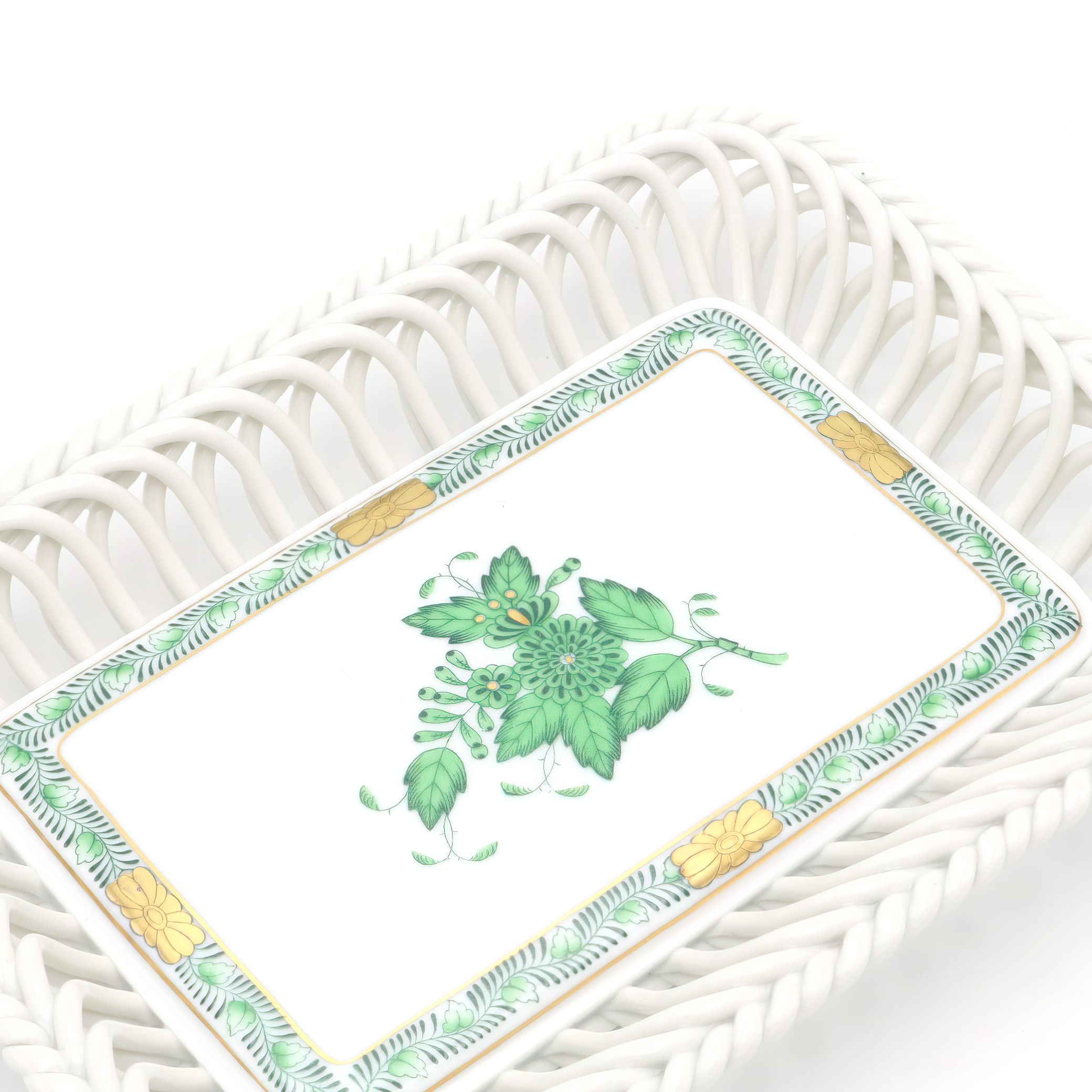 Du hast hier ein wirklich außergewöhnliches Schmuckstück vor dir: eine Herend Chinesisches Bouquet Grün Centerpiece-Bonbonniere aus dem Jahr 1960. Dieses künstlerisch wertvolle Objekt verbindet auf besondere Weise traditionelle Handwerkskunst und elegantes Mid-Century Design – ein perfektes Beispiel für anspruchsvolles Porzellan aus der berühmten Manufaktur Herend, Ungarn.