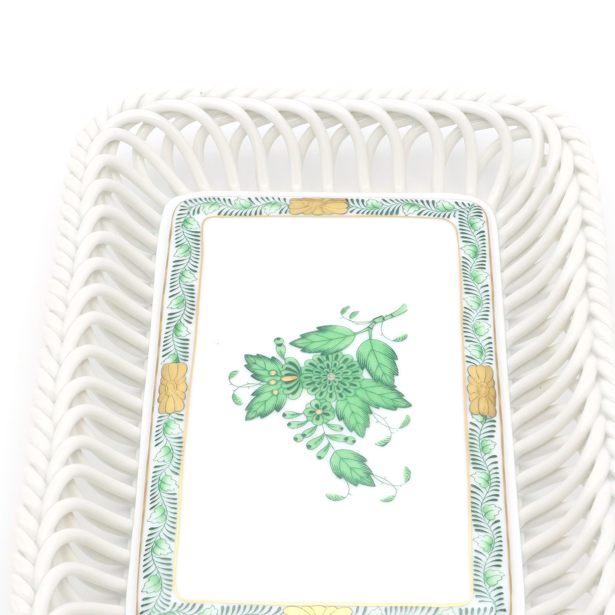 Allein schon die außergewöhnliche Ausführung macht diese Porzellan-Mittelpunkt-Schale zu einem echten Blickfang auf jedem Tisch. Der Rahmen besteht aus fein verflochtenen weißen Porzellanstreben, die in präziser Handarbeit gefertigt wurden – ein Signaturelement der Herend-Kunst. Dieses offene Geflecht, das den eigentlichen Einsatz umgibt, gibt dem Stück eine luftige Leichtigkeit und betont seine dekorative Wirkung in jeder Umgebung, sei es auf deiner festlich gedeckten Tafel oder als stilvolles Objekt im Wohnzimmer.