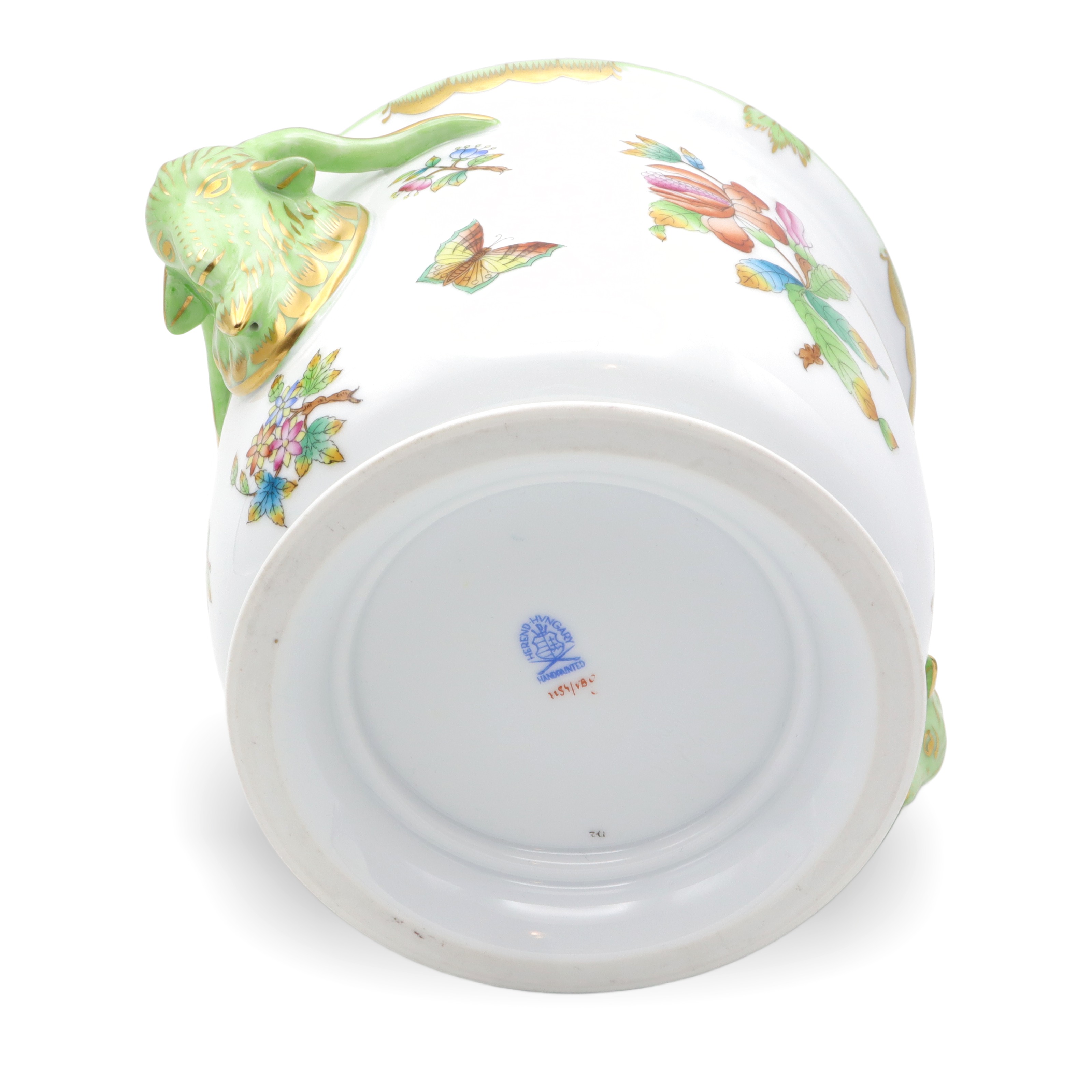 Vor dir steht ein außergewöhnliches Sammlerstück: ein original Herend Queen Victoria Cachepot aus dem Jahr 1950, gestaltet mit den ikonischen Widdergriffen. Dieser sehr seltene Porzellan Pflanztopf ist ein typisches Beispiel höchster Porzellankunst – eine seltene Rarität, die nicht nur antike Herend-Liebhaber begeistert, sondern auch jeden, der Wert auf historische Wertarbeit und zeitlose Eleganz legt.