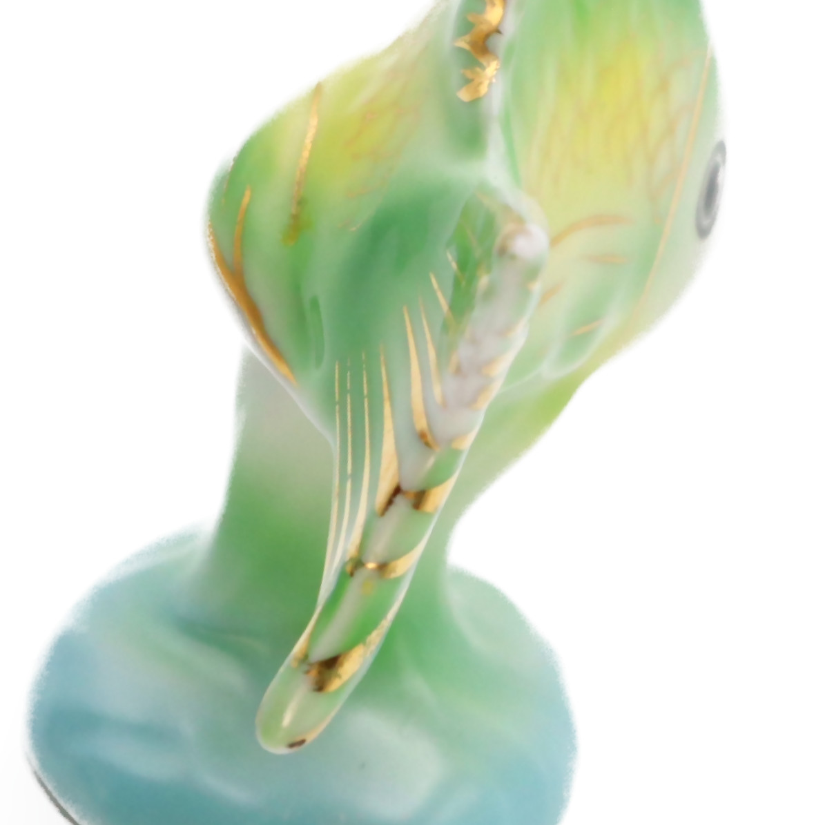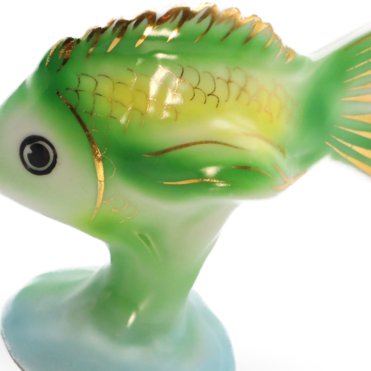 Der Zustand der Figur ist fast neuwertig, was bei Vintage-Stücken dieser Art selten zu finden ist. Diese Erhaltung verleiht dem Kunstwerk eine zusätzliche Anziehungskraft für Sammler, die den Wert und die Geschichte der Porzellankunst zu schätzen wissen. Die beeindruckende Qualität und der makellose Zustand machen diese Fischfigur zu einem kostbaren Sammlerstück, das über Generationen hinweg geschätzt werden kann.