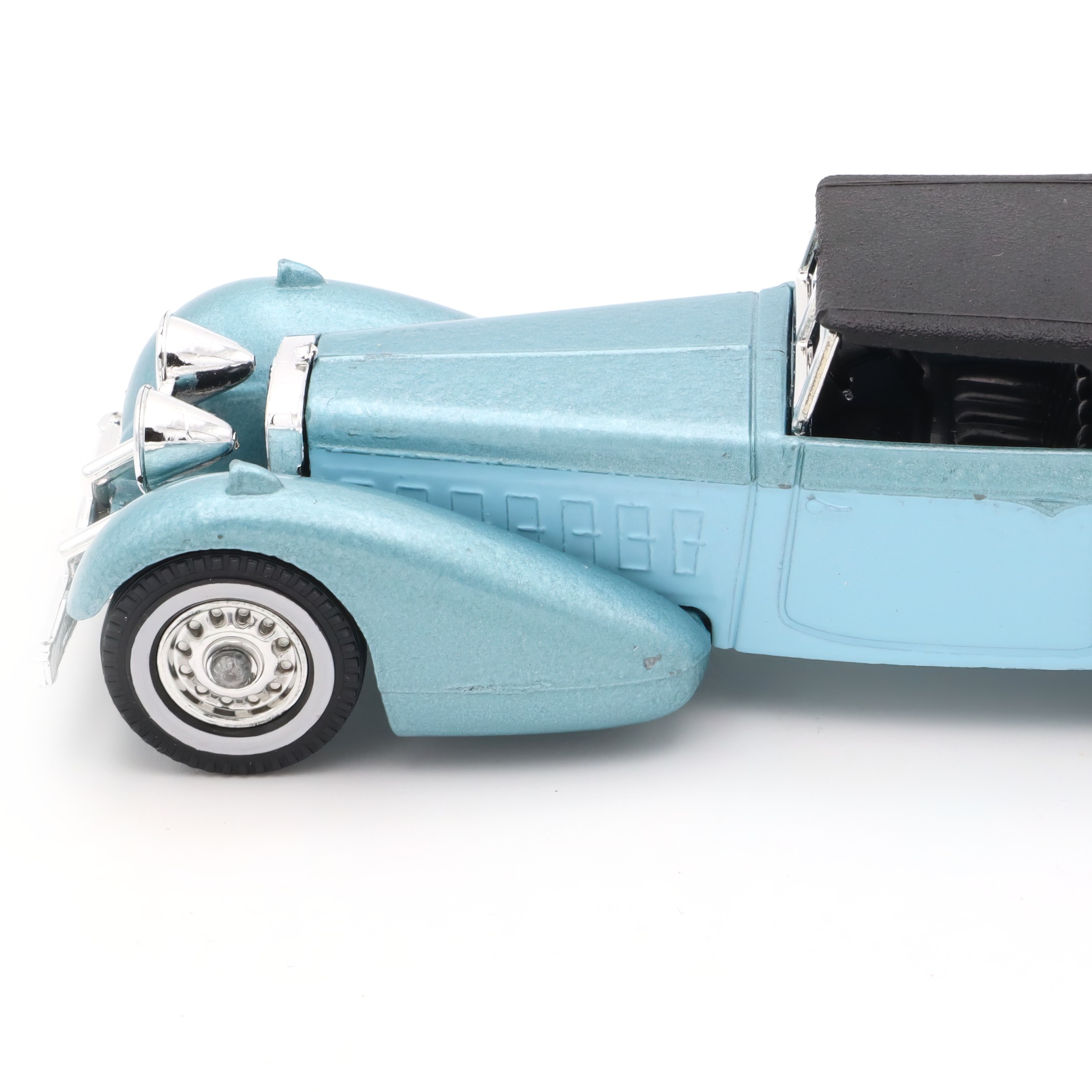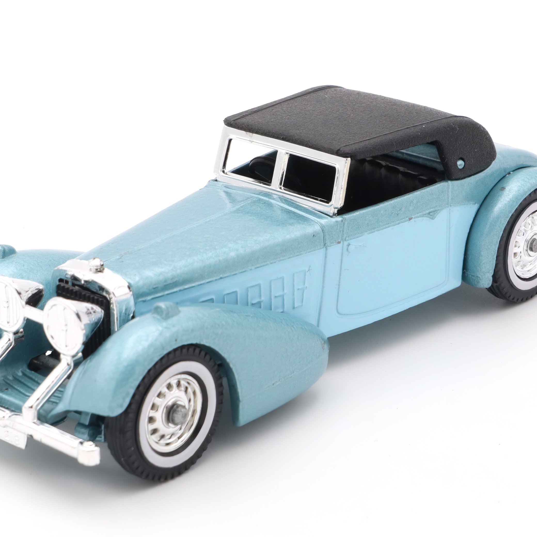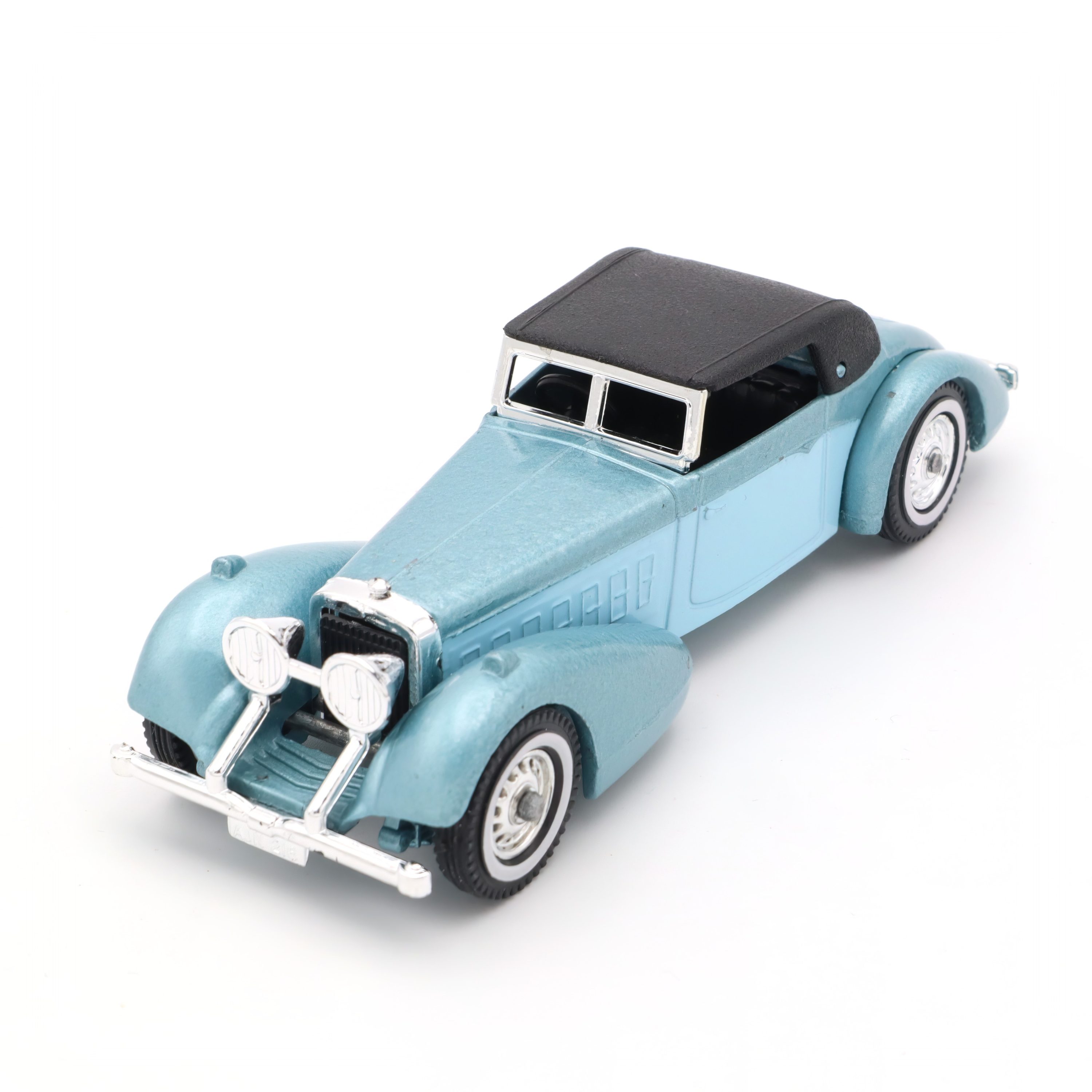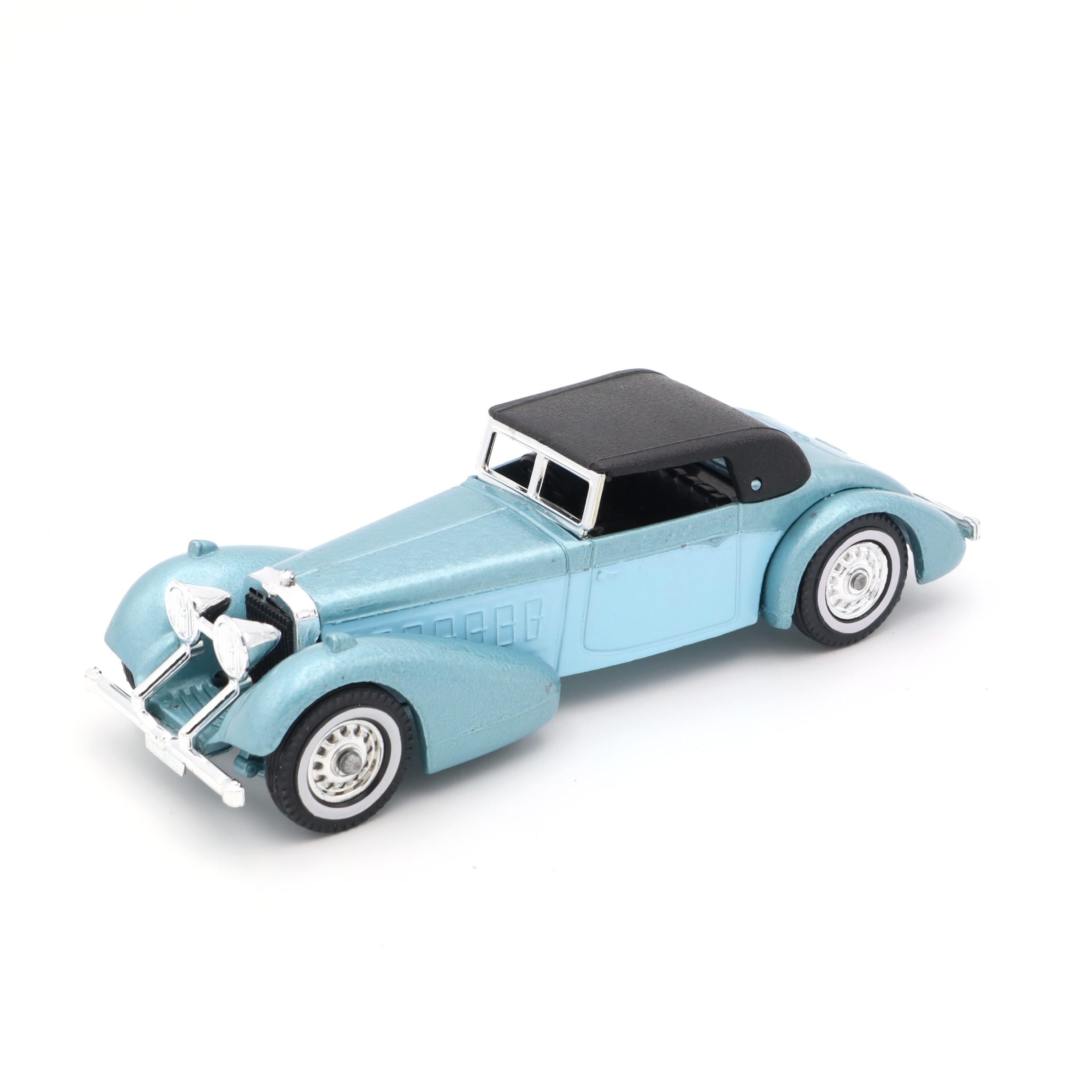 Hier hast du ein echtes Sammlerstück vor dir: das Y-17 Hispano Suiza Blau, ein Vintage Druckguss Auto im Miniaturformat, das die goldene Ära klassischer Automobile auf beeindruckende Weise widerspiegelt. Dieses Modellauto steht sinnbildlich für die kunstvolle Ingenieurskunst und den Stil, für den die Marke Hispano Suiza seit jeher bekannt ist. Schon auf den ersten Blick fällt dir die filigrane Ausarbeitung ins Auge – das feine, pastellblaue Chassis, die akkurat gesetzten Details wie die silbernen Kühlergrill-Elemente und die glänzenden Scheinwerfer, dazu das elegant abgesetzte schwarze Dach, das den Charakter dieses Klassikers unterstreicht.