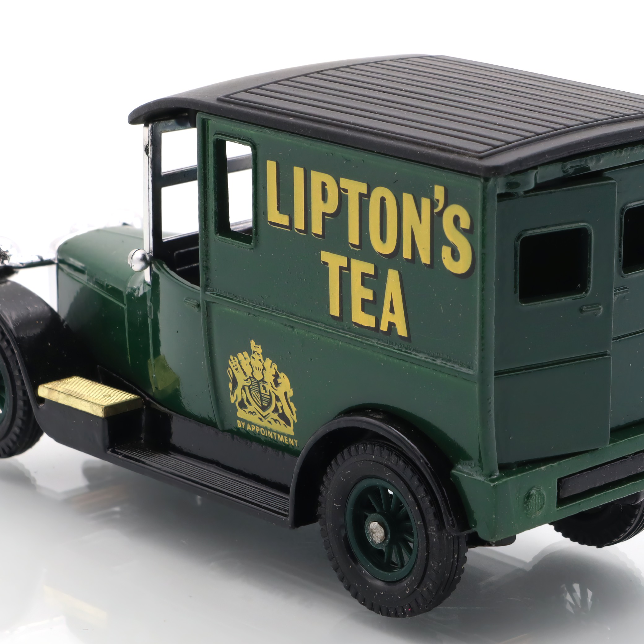 Matchbox hat mit seiner „Models of Yesteryear“-Reihe Maßstäbe für Sammler gesetzt. Die Firma Lesney Products, die hinter Matchbox stand, war eine der wichtigsten Hersteller für Druckgussmodelle weltweit. Gerade die speziellen Werbemodelle wie unser Lipton’s Tea Lieferwagen wurden oft in kleineren Stückzahlen gefertigt, da sie gezielt Sammler und Liebhaber britischer Firmengeschichte ansprechen sollten. Solche Modelle sind besonders auf Auktionen und im internationalen Handel nachgefragt und gelten als wertbeständig. Die Modellreihe hat sich ihren Kultstatus hart verdient – und Stücke wie der Y-5 1927 Talbot sind aus keinem gut sortierten Sammlerhaushalt wegzudenken.